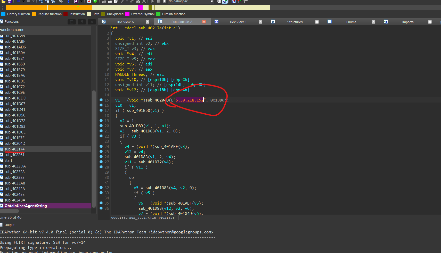 在IDA中于sub_402174
