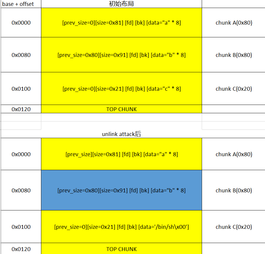 }- 这里存在offbyone,但对于考察unlink的题目一般不会利用;